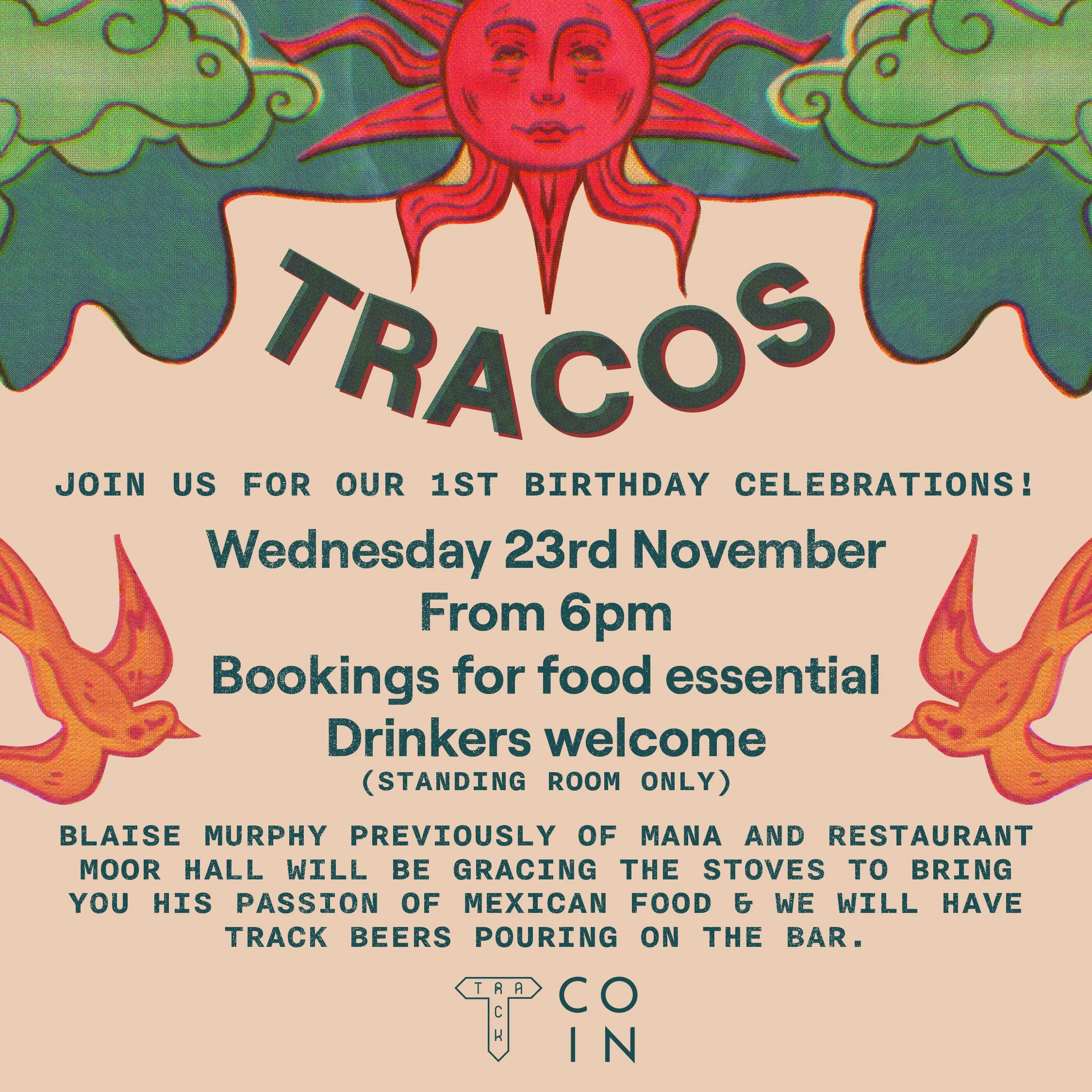 This is a big one and truly exciting for us to announce. On Wednesday 23rd November not only will it be our first birthday (oh how fast thats come around), but we will be hosting a Track brewery tasting and take-over, however thats not all. We wanted to make this truly special and a night to remember so we got in touch with an old colleague Blaise Murphy who will be serving up some Mexican goodness in the form of Tacos and sides.