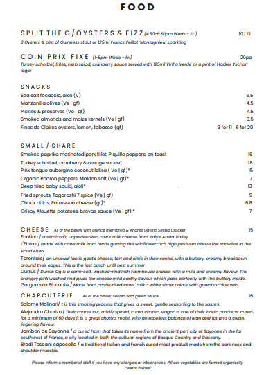 Please note: menu can be subject to daily changes
